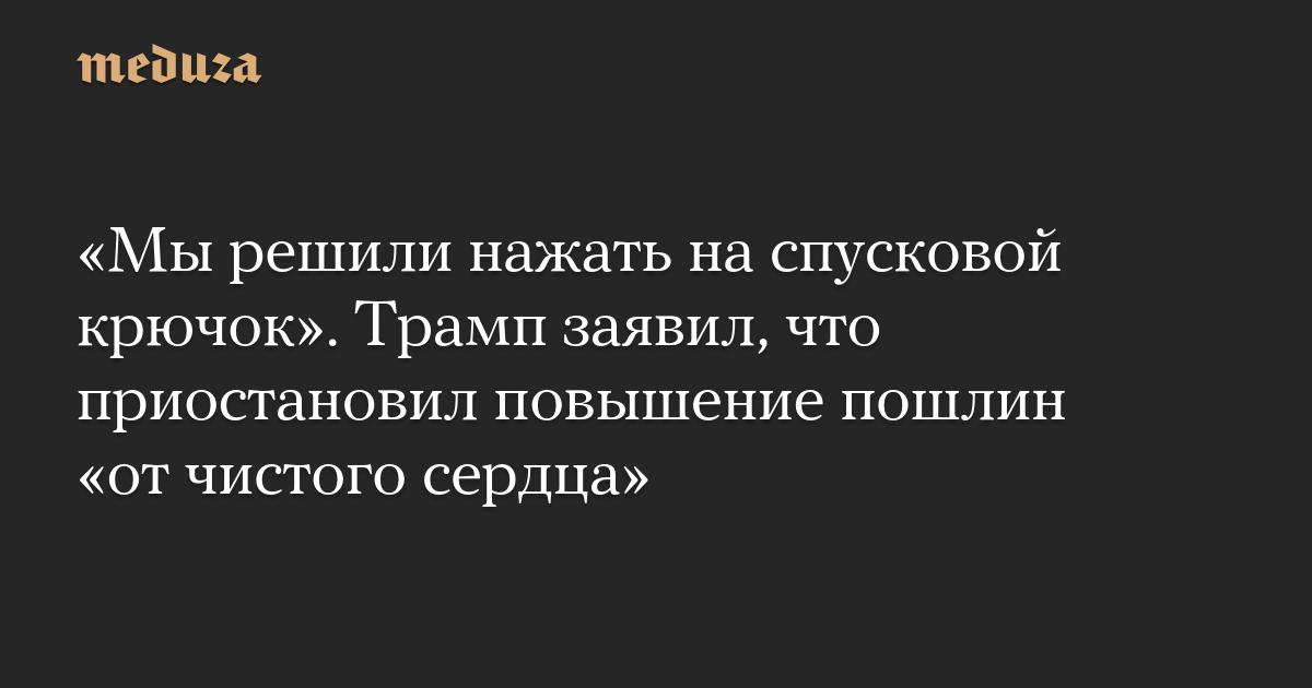 «Мы решили нажать на спусковой крючок». Трамп заявил, что приостановил повышение пошлин «от чистого сердца»