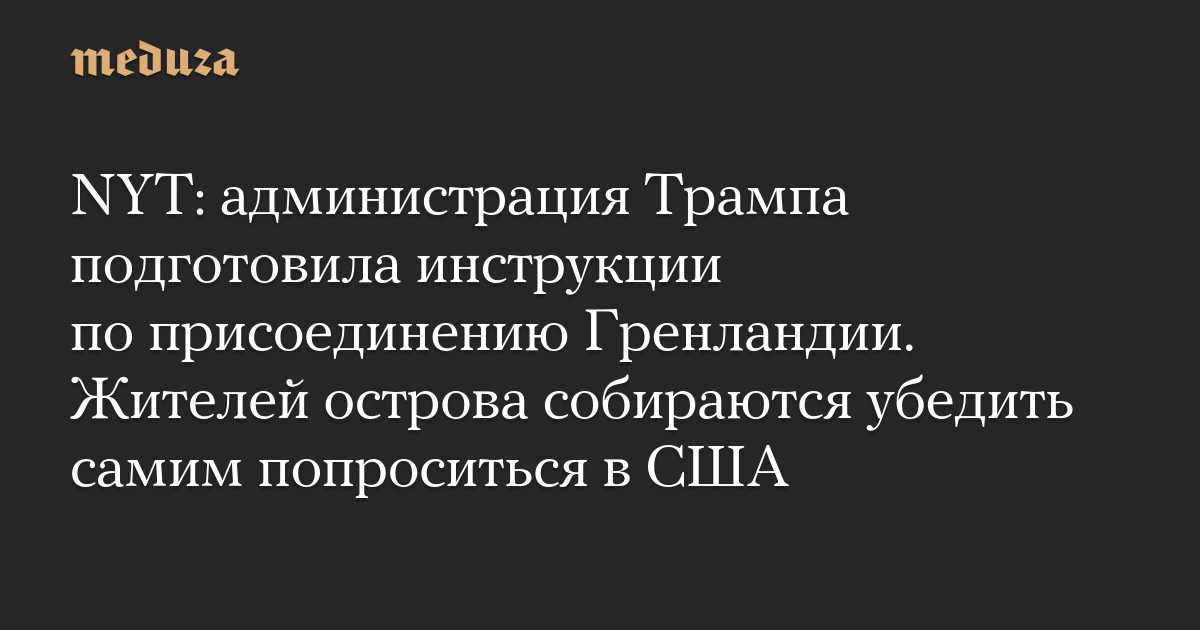 NYT: администрация Трампа подготовила инструкции по присоединению Гренландии. Жителей острова собираются убедить самим попроситься в США