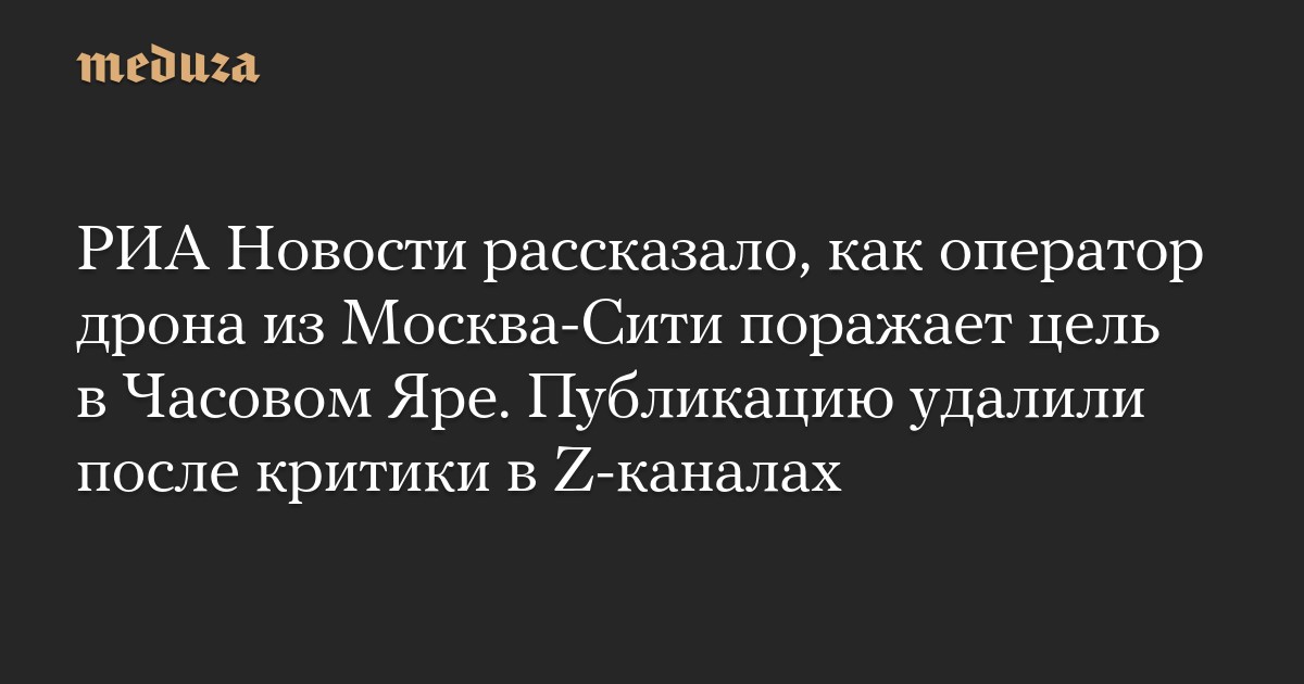 РИА Новости рассказало, как оператор дрона из Москва-Сити поражает цель в Часовом Яре. Публикацию удалили после критики в Z-каналах