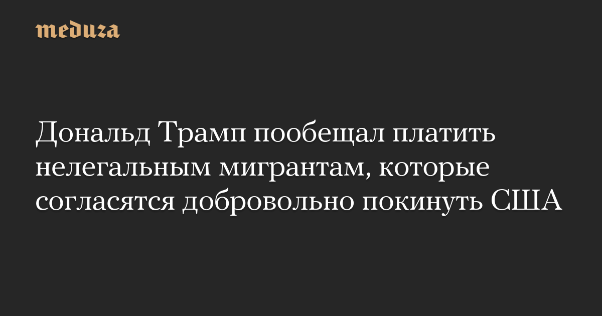 По словам Трампа, в рамках программы «самодепортации» нелегальные мигранты получат стипендию и потенциальный шанс вернуться в США в будущем.