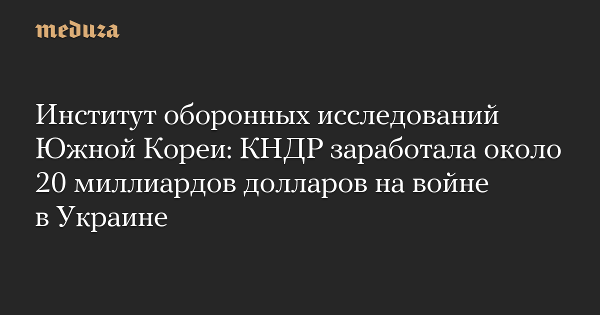 Институт оборонных исследований Южной Кореи: КНДР заработала около 20 миллиардов долларов на войне в Украине
