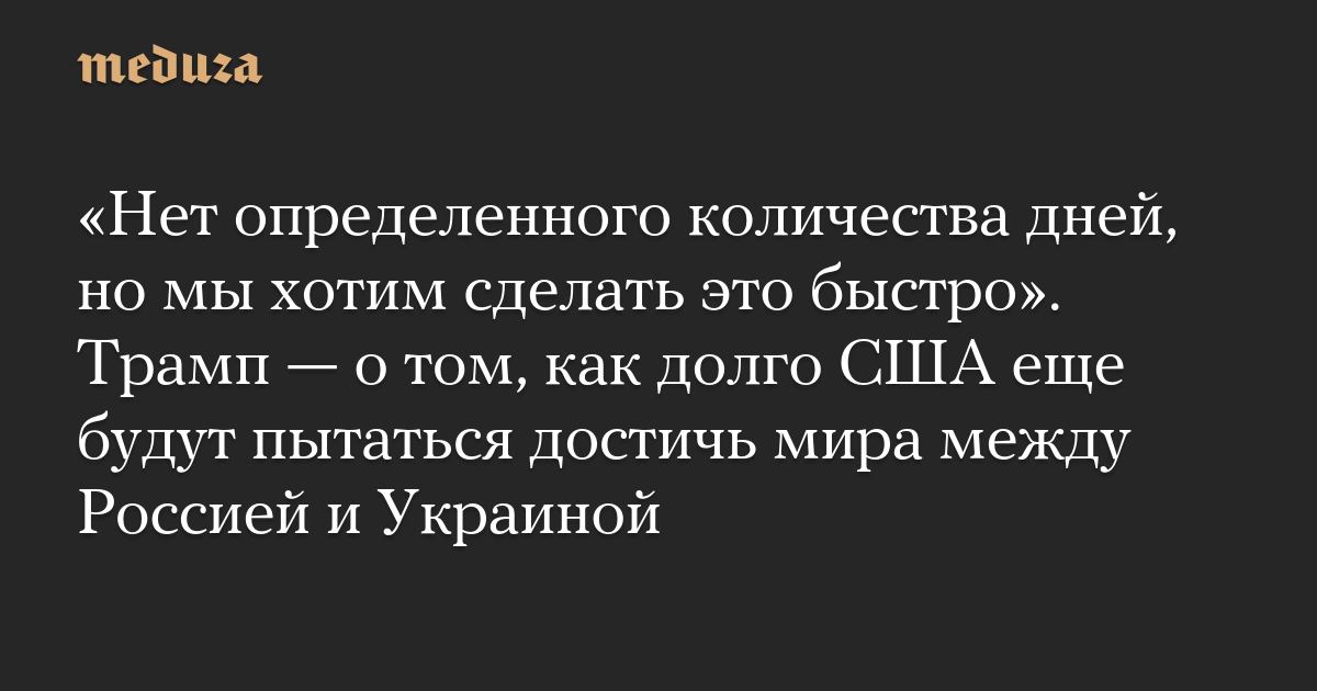 «Нет определенного количества дней, но мы хотим сделать это быстро». Трамп — о том, как долго США еще будут пытаться достичь мира между Россией и Украиной