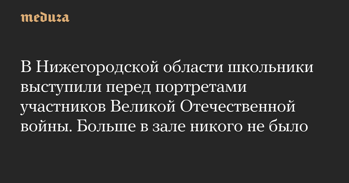 В Нижегородской области школьники выступили перед портретами участников Великой Отечественной войны. Больше в зале никого не было