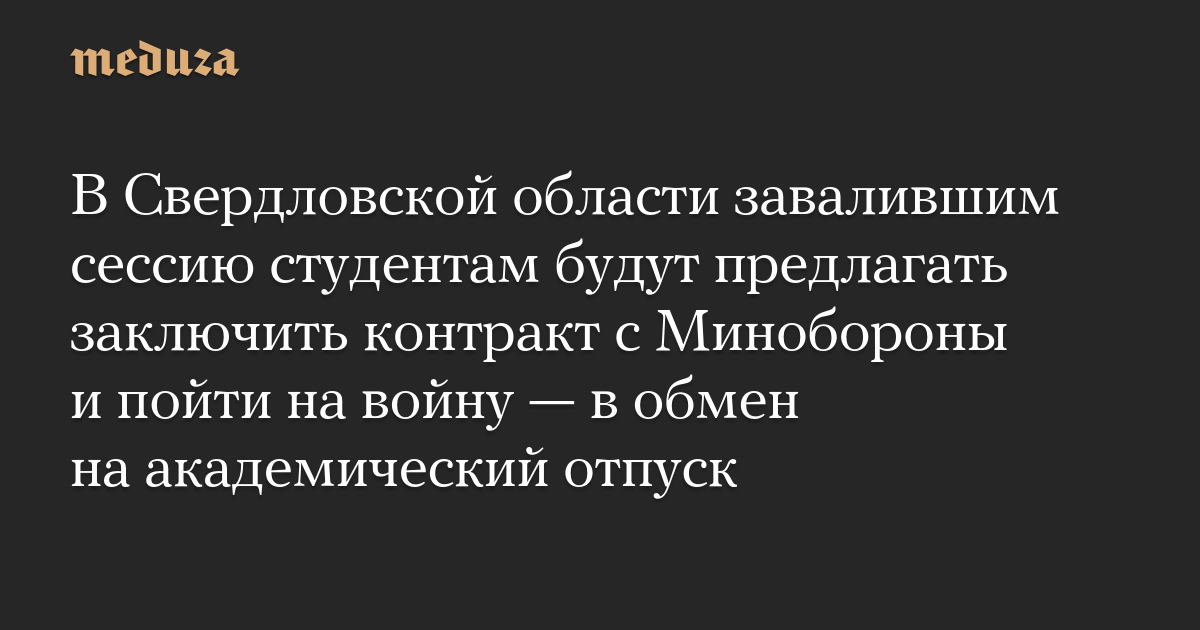 В Свердловской области завалившим сессию студентам будут предлагать заключить контракт с Минобороны и пойти на войну — в обмен на академический отпуск