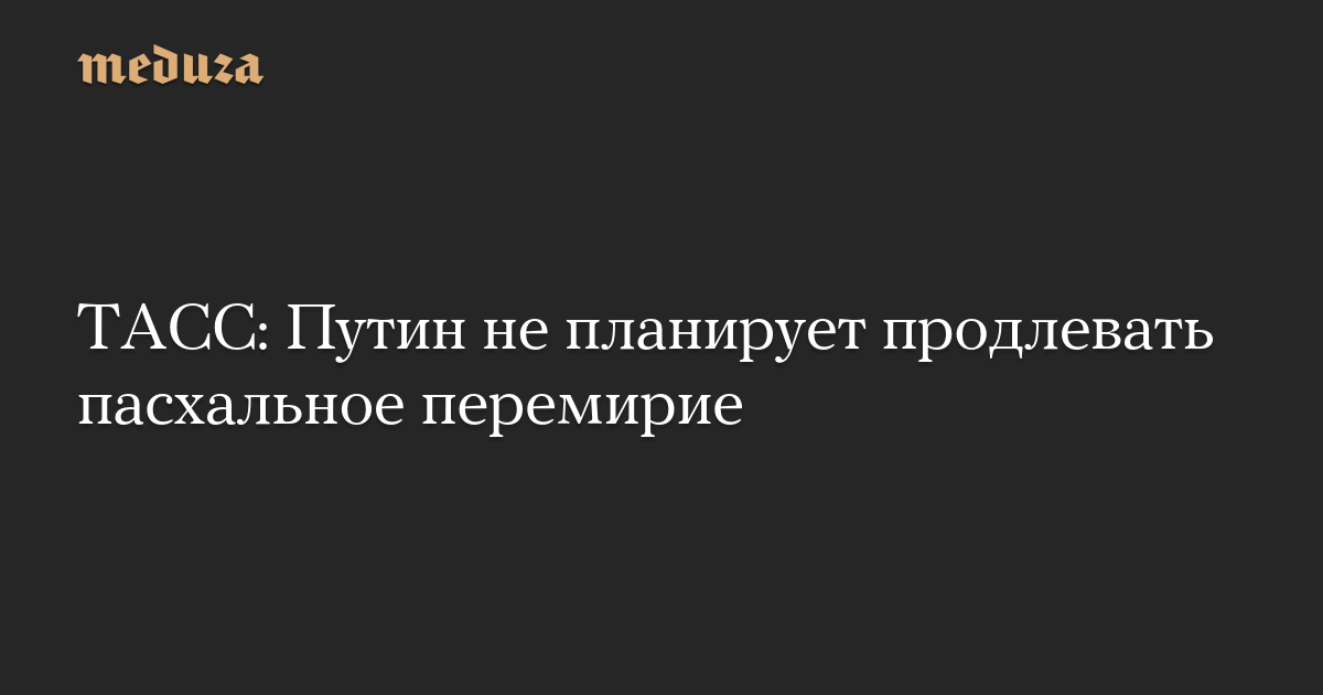 ТАСС: Путин не планирует продлевать пасхальное перемирие