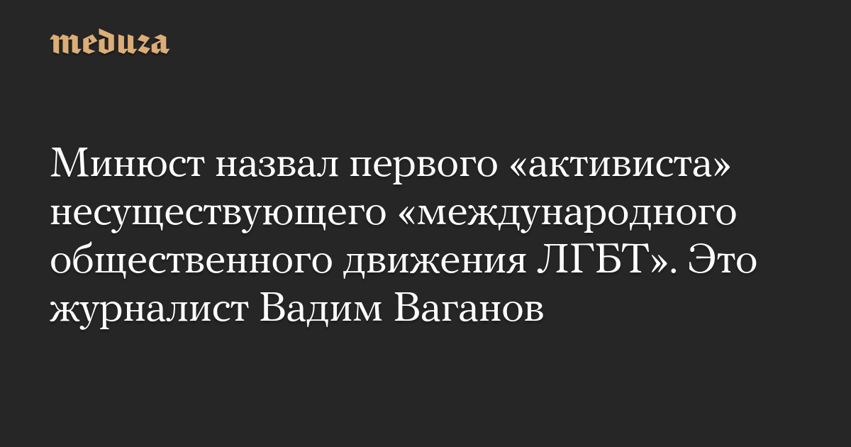 Минюст назвал первого «активиста» несуществующего «международного общественного движения ЛГБТ». Это журналист Вадим Ваганов