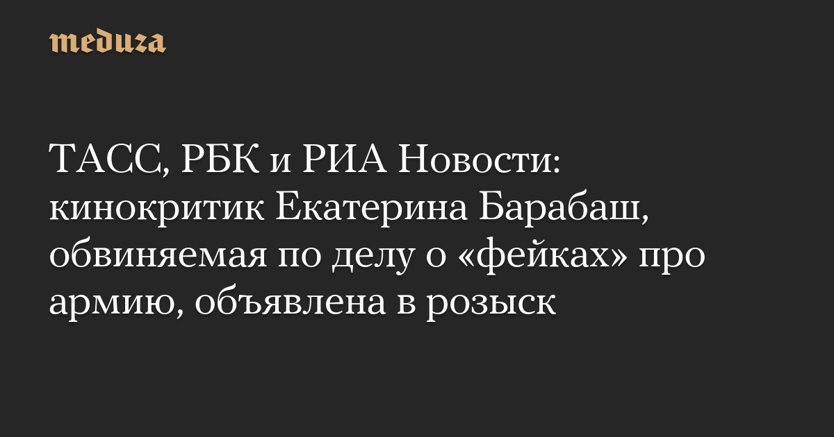 ТАСС, РБК и РИА Новости: кинокритик Екатерина Барабаш, обвиняемая по делу о «фейках» про армию, объявлена в розыск