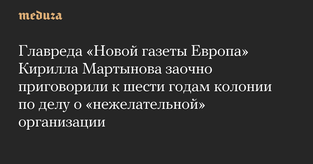 Басманный суд Москвы заочно приговорил главного редактора «Новой газеты Европа» Кирилла Мартынова к шести годам колонии по обвинению в организации деятельности «нежелательной» организации (статья 284.1 УК). Об этом сообщает само издание.