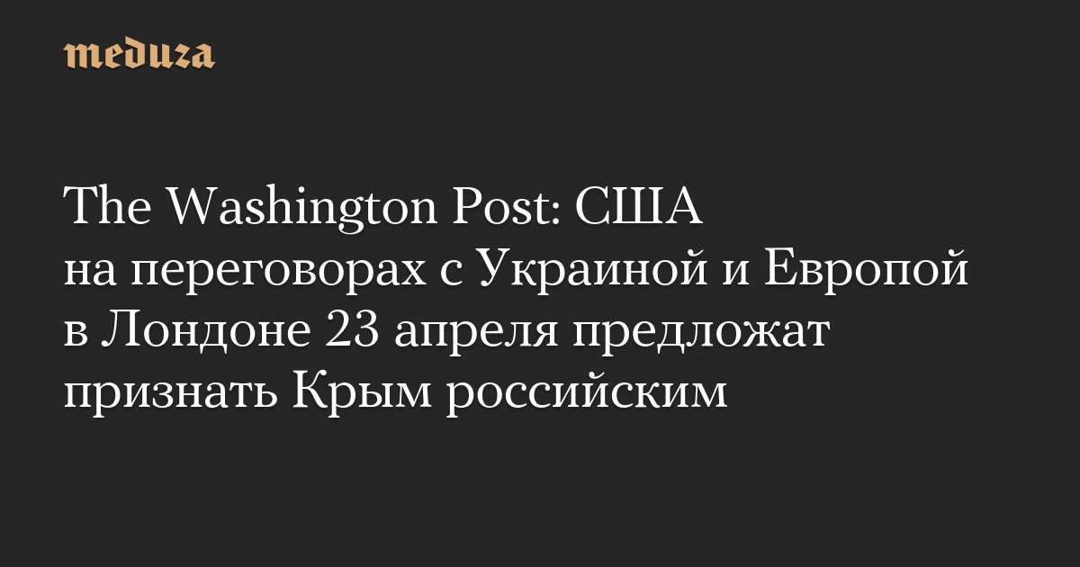 На переговорах в Лондоне 23 апреля украинская и европейская делегации «столкнутся с предложением США» признать Крым российским и заморозить линию фронта, пишет The Washington Post со ссылкой на несколько источников.