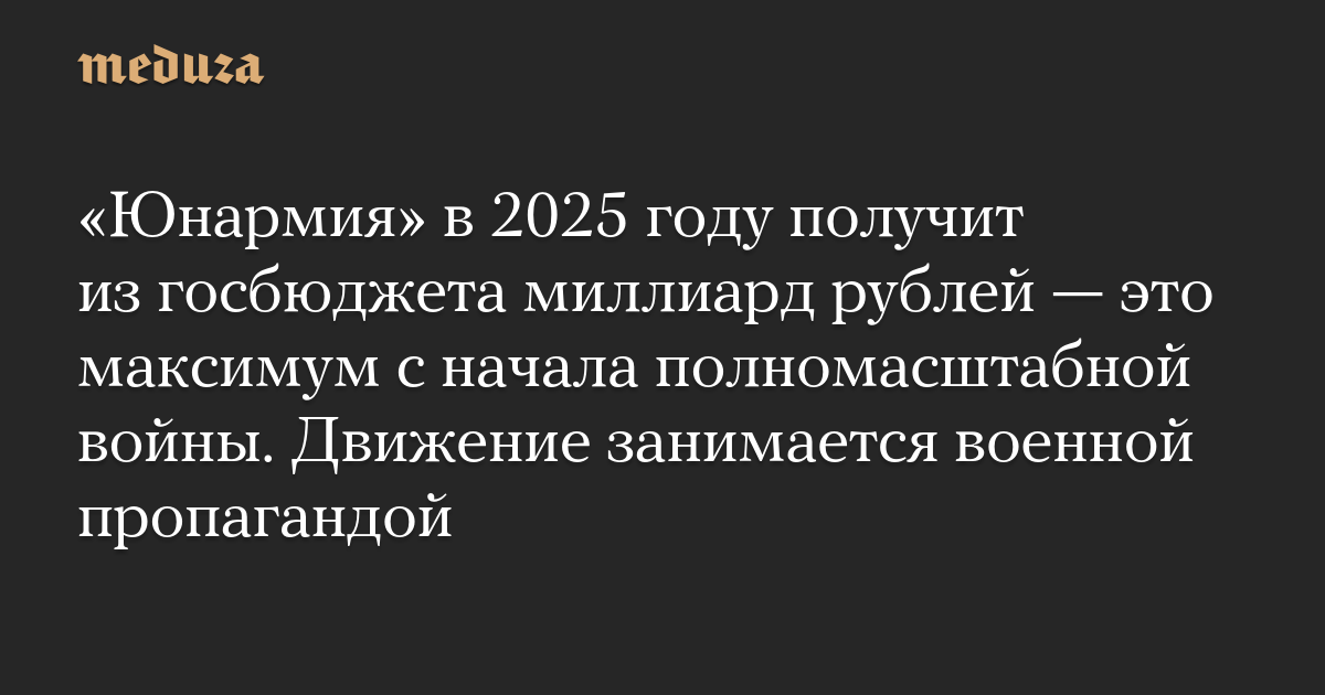 Как отмечает издание, в 2025 году движение получит из госбюджета максимальное финансирование с начала полномасштабной войны. В 2024-м «Юнармия» получила грантов на 480 миллионов рублей, в 2023-м — на 470 миллионов рублей, а в 2022-м — на 560 миллионов рублей.