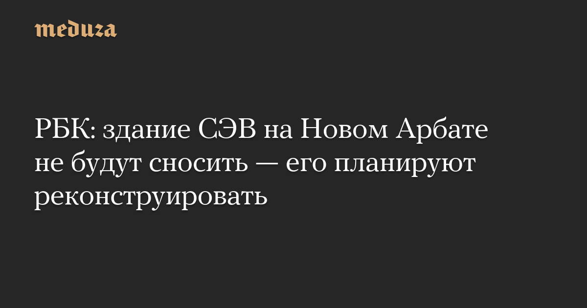 РБК: здание СЭВ на Новом Арбате не будут сносить — его планируют реконструировать