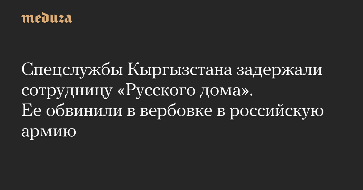 Спецслужбы Кыргызстана задержали сотрудницу «Русского дома». Ее обвинили в вербовке в российскую армию