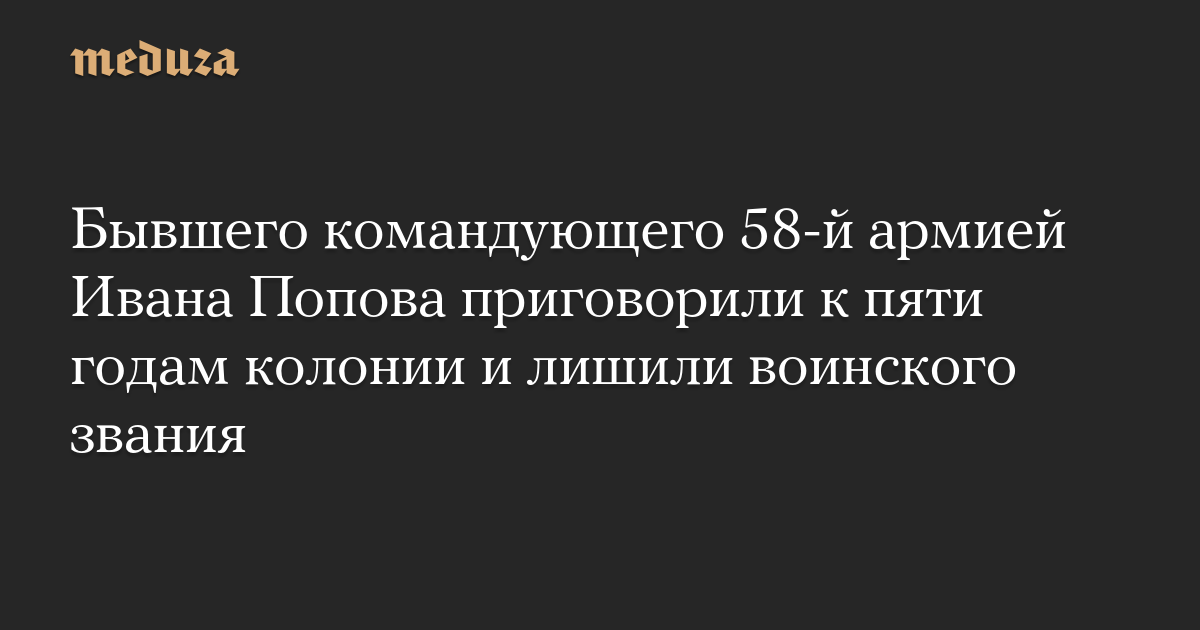 Бывшего командующего 58-й армией Ивана Попова приговорили к пяти годам колонии и лишили воинского звания