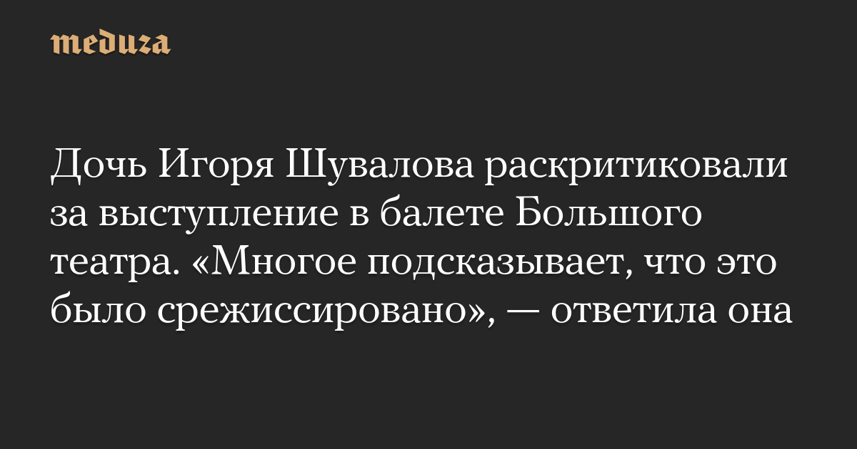 Дочь Игоря Шувалова раскритиковали за выступление в балете Большого театра. «Многое подсказывает, что это было срежиссировано», — ответила она