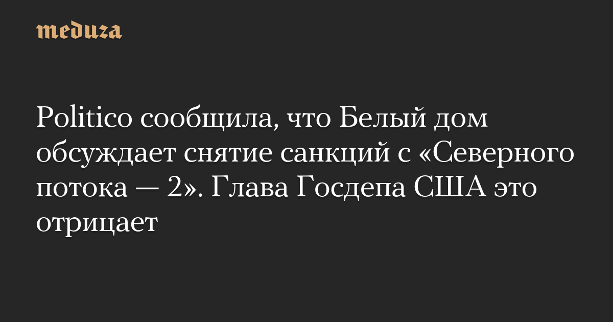 Politico сообщила, что Белый дом обсуждает снятие санкций с «Северного потока — 2». Глава Госдепа США это отрицает