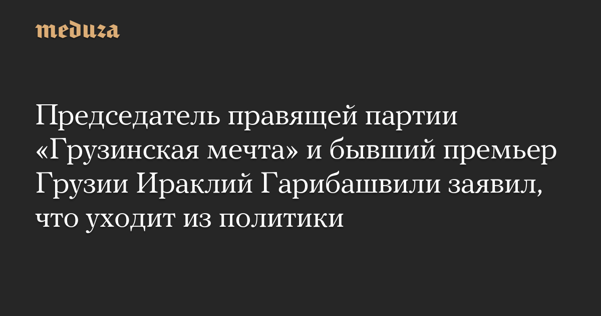 Председатель правящей партии «Грузинская мечта» и бывший премьер Грузии Ираклий Гарибашвили заявил, что уходит из политики