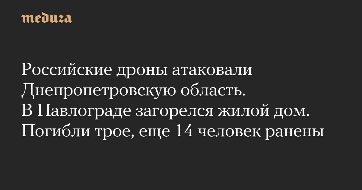 Российские дроны атаковали Днепропетровскую область. В Павлограде загорелся жилой дом. Погибли трое, еще 14 человек ранены