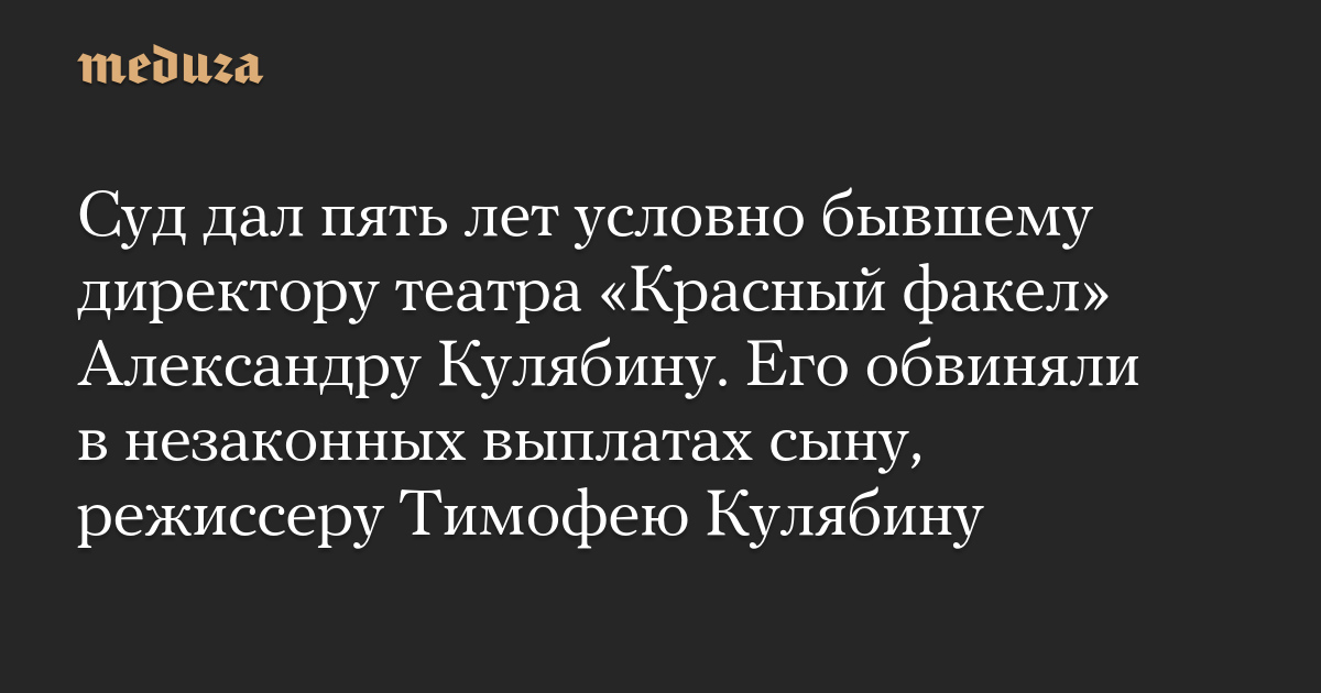 Суд дал пять лет условно бывшему директору театра «Красный факел» Александру Кулябину. Его обвиняли в незаконных выплатах сыну, режиссеру Тимофею Кулябину