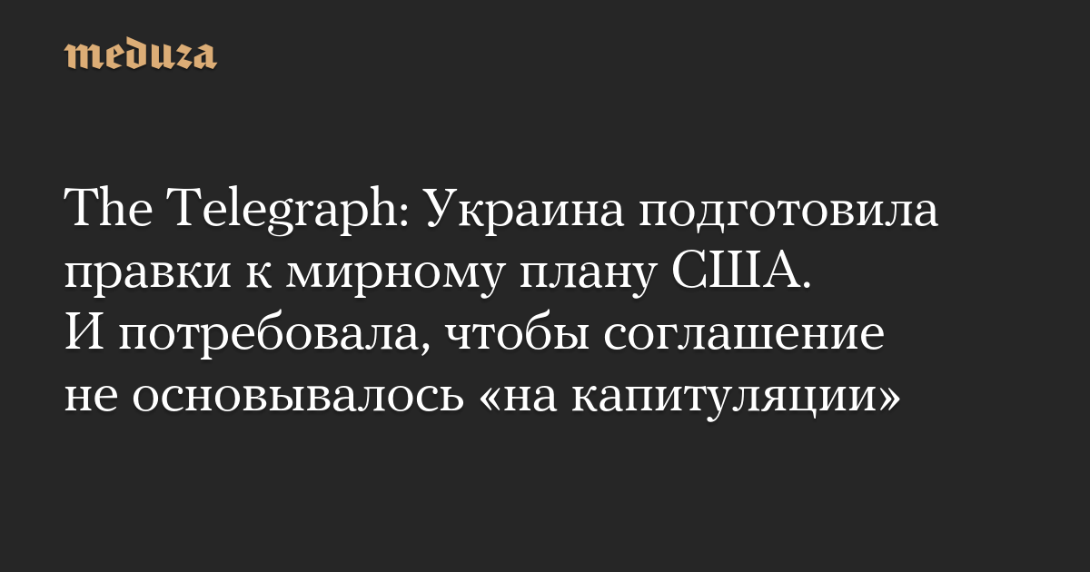 The Telegraph: Украина подготовила правки к мирному плану США. И потребовала, чтобы соглашение не основывалось «на капитуляции»