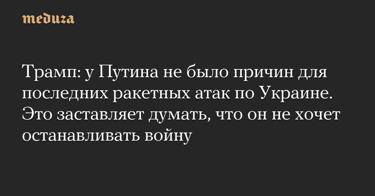 Трамп: у Путина не было причин для последних ракетных атак по Украине. Это заставляет думать, что он не хочет останавливать войну
