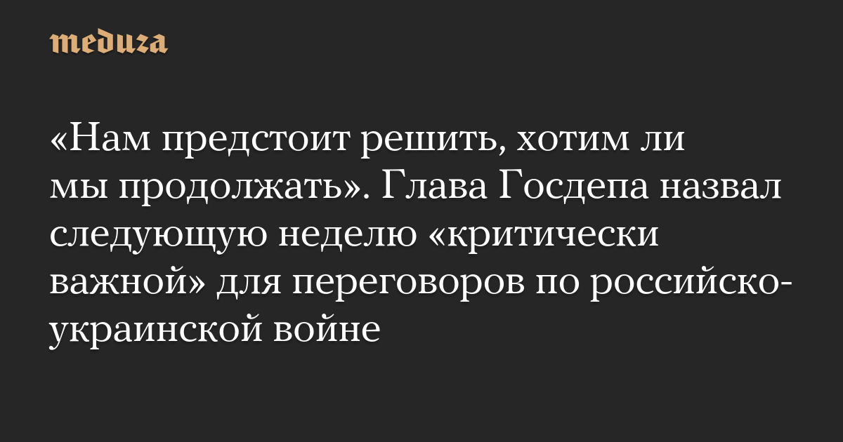 «Нам предстоит решить, хотим ли мы продолжать». Глава Госдепа назвал следующую неделю «критически важной» для переговоров по российско-украинской войне