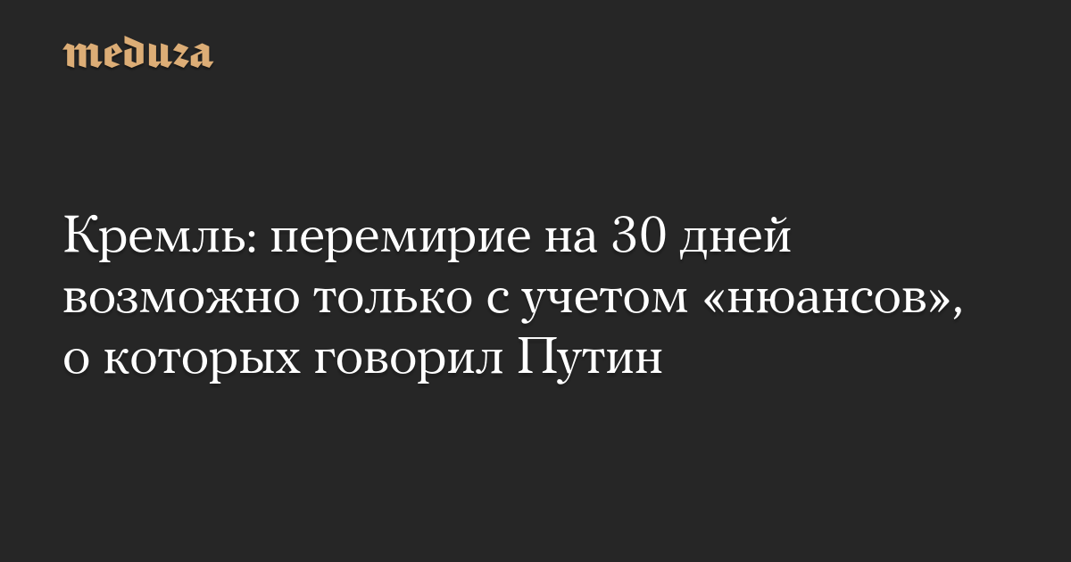 Кремль: перемирие на 30 дней возможно только с учетом «нюансов», о которых говорил Путин