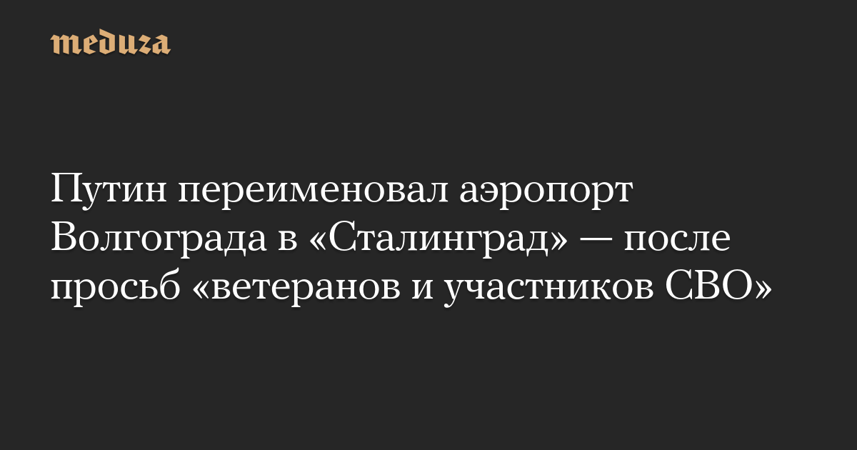 Путин переименовал аэропорт Волгограда в «Сталинград» — после просьб «ветеранов и участников СВО»