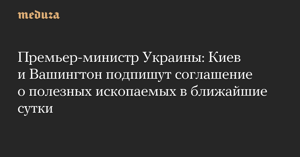 Премьер-министр Украины: Киев и Вашингтон подпишут соглашение о полезных ископаемых в ближайшие сутки