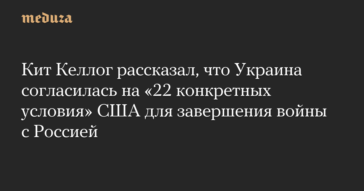 Кит Келлог рассказал, что Украина согласилась на «22 конкретных условия» США для завершения войны с Россией