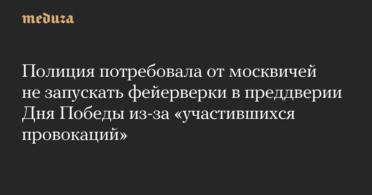 Полиция потребовала от москвичей не запускать фейерверки в преддверии Дня Победы из-за «участившихся провокаций»