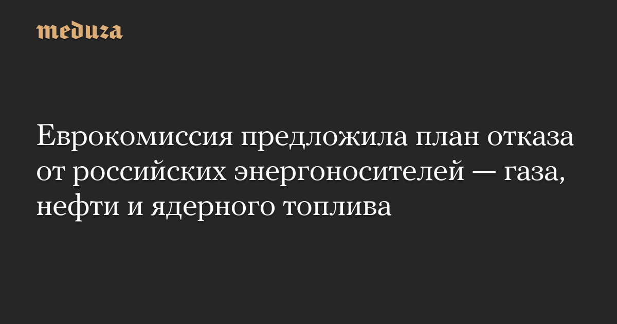 Еврокомиссия предложила план отказа от российских энергоносителей — газа, нефти и ядерного топлива