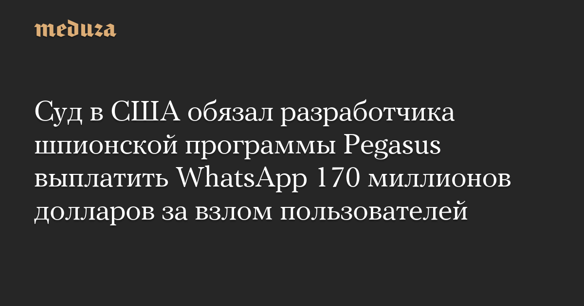 Суд в США обязал разработчика шпионской программы Pegasus выплатить WhatsApp 170 миллионов долларов за взлом пользователей