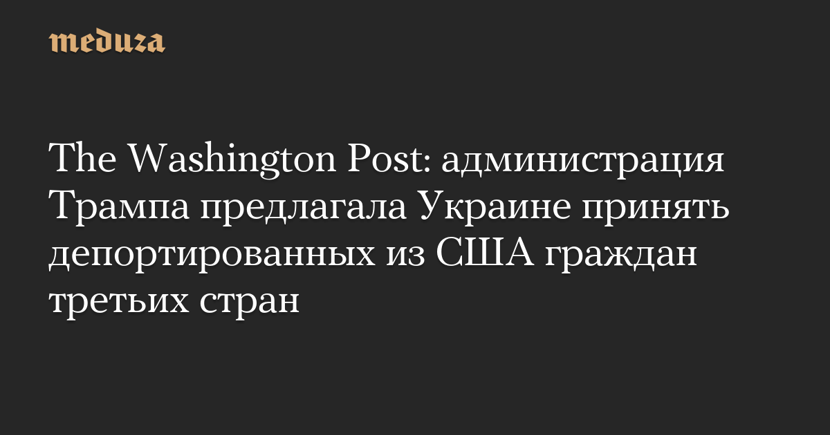 Администрация Дональда Трампа в конце января 2025 года предлагала украинским властям принять «неопределенное количество» депортированных из США граждан других стран. Об этом сообщила The Washington Post со ссылкой на соответствующие документы.