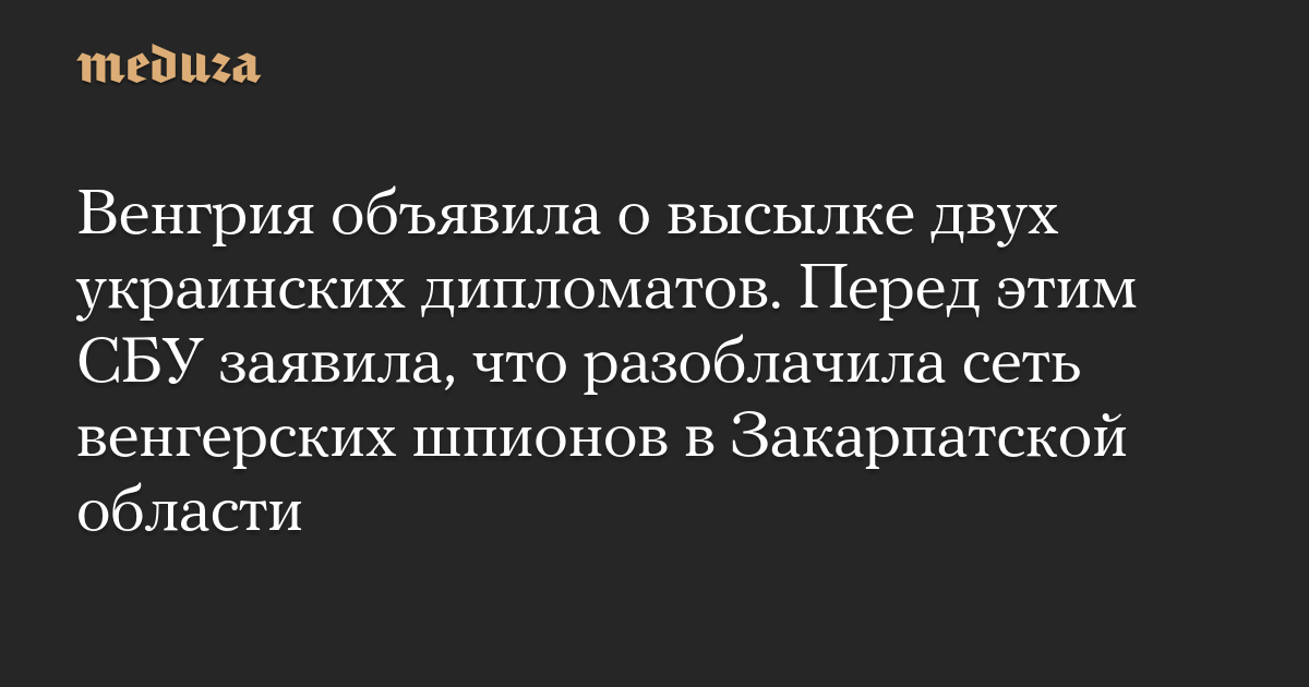 Венгрия объявила о высылке двух украинских дипломатов. Перед этим СБУ заявила, что разоблачила сеть венгерских шпионов в Закарпатской области