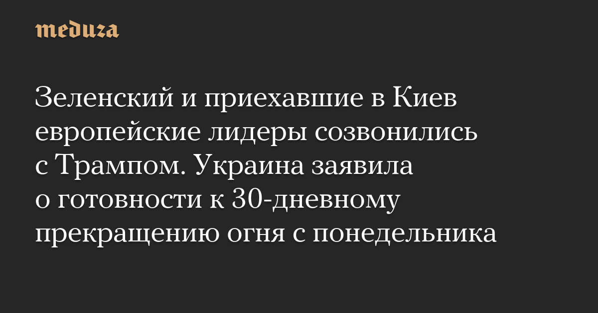 Зеленский и приехавшие в Киев европейские лидеры созвонились с Трампом. Украина заявила о готовности к 30-дневному прекращению огня с понедельника