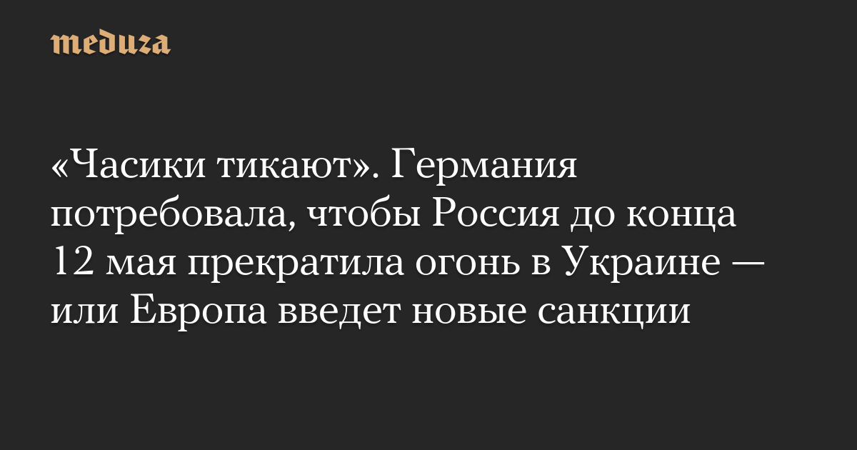 «Часики тикают». Германия потребовала, чтобы Россия до конца 12 мая прекратила огонь в Украине — или Европа введет новые санкции