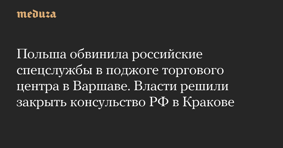 Польша обвинила российские спецслужбы в поджоге торгового центра в Варшаве. Власти решили закрыть консульство РФ в Кракове