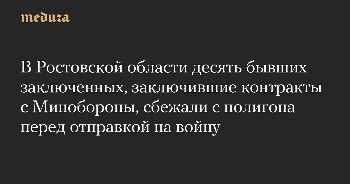 С военного полигона под Ростовом сбежали десять бывших заключенных, которые заключили контракты с Минобороны РФ и должны были отправиться на войну в Украине. Об этом сообщило издание Donday и подтвердил источник 161.ru в силовых структурах.