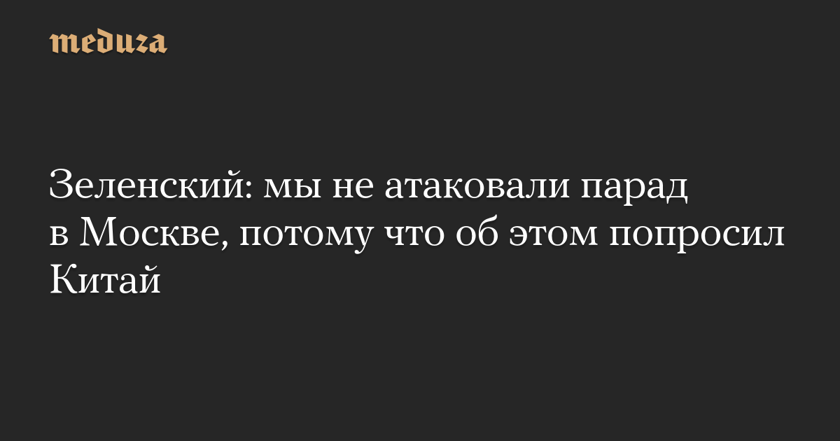 Зеленский: мы не атаковали парад в Москве, потому что об этом попросил Китай