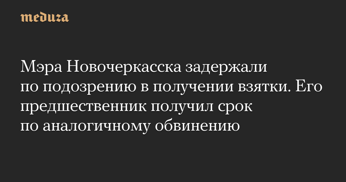 Мэра Новочеркасска задержали по подозрению в получении взятки. Его предшественник получил срок по аналогичному обвинению
