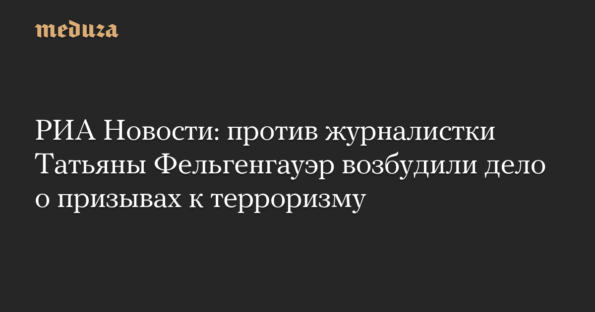 В отношении журналистки и продюсера ютьюб-канала «Медиазоны» Татьяны Фельгенгауэр возбудили уголовное дело о призывах к терроризму (часть 2 статьи 205.2 УК РФ). Об этом сообщило РИА Новости со ссылкой на источник в силовых структурах.