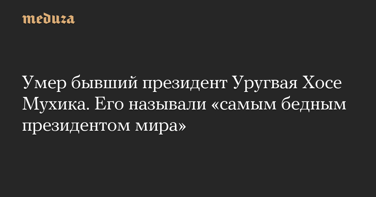 Умер бывший президент Уругвая Хосе Мухика. Его называли «самым бедным президентом мира»