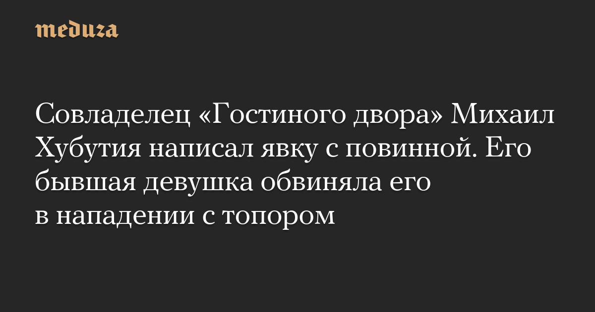 Совладелец «Гостиного двора» Михаил Хубутия написал явку с повинной. Его бывшая девушка обвиняла его в нападении с топором