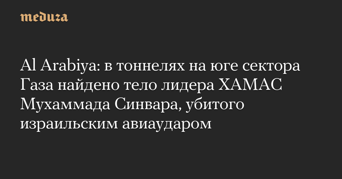 Al Arabiya: в тоннелях на юге сектора Газа найдено тело лидера ХАМАС Мухаммада Синвара, убитого израильским авиаударом