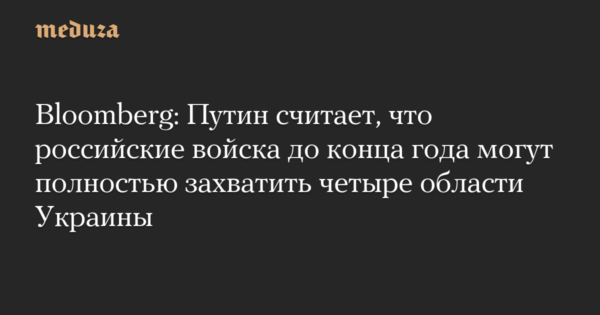 Bloomberg: Путин считает, что российские войска до конца года могут полностью захватить четыре области Украины