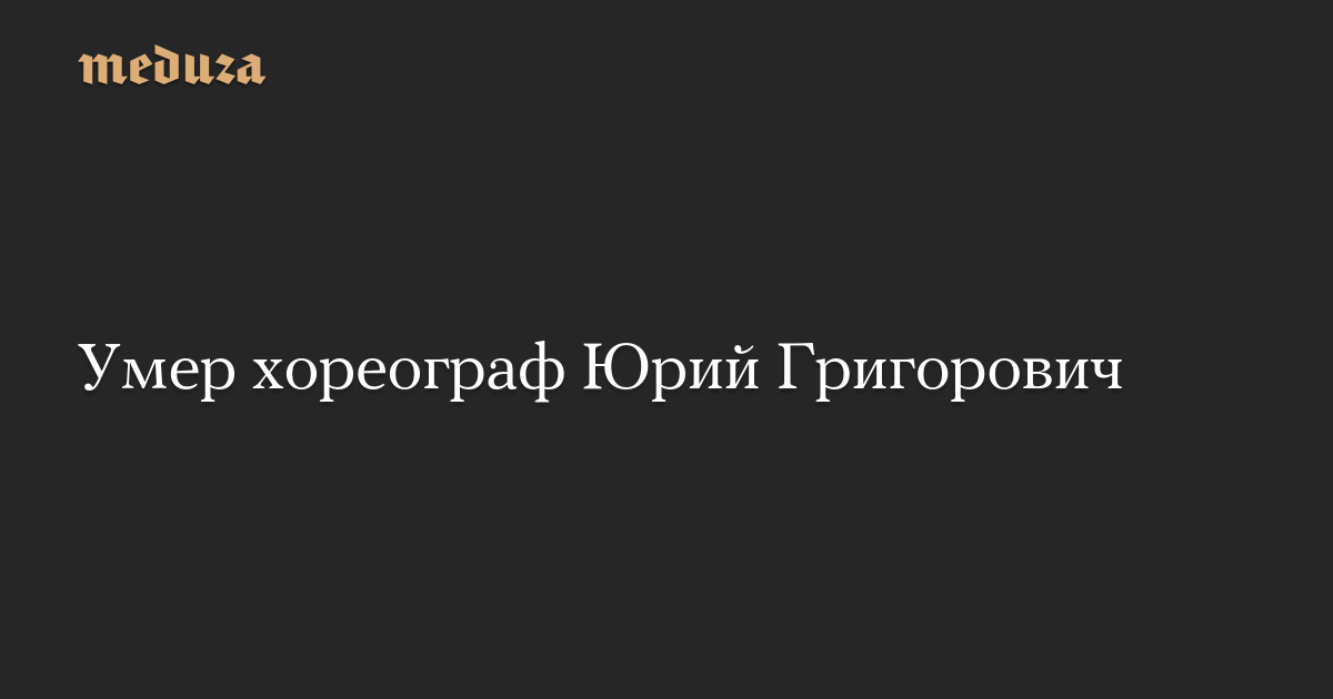 Советский и российский хореограф и балетмейстер Юрий Григорович умер в возрасте 98 лет. Об этом сообщает ТАСС.