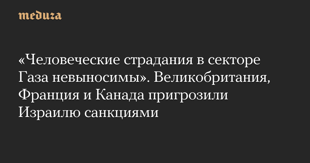 «Человеческие страдания в секторе Газа невыносимы». Великобритания, Франция и Канада пригрозили Израилю санкциями