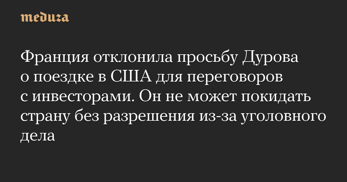 Франция отклонила просьбу Дурова о поездке в США для переговоров с инвесторами. Он не может покидать страну без разрешения из-за уголовного дела