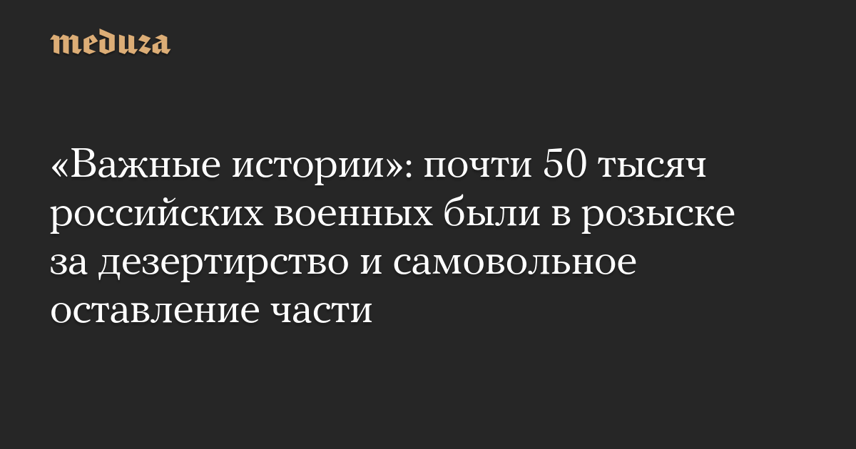 «Важные истории»: почти 50 тысяч российских военных были в розыске за дезертирство и самовольное оставление части