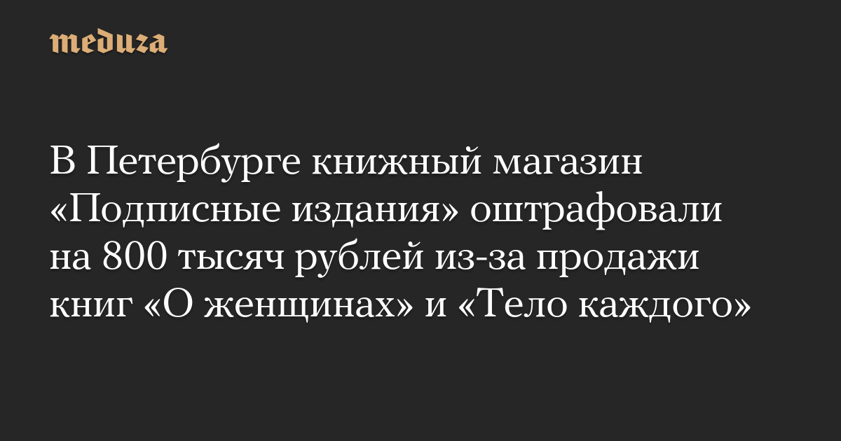 В Петербурге книжный магазин «Подписные издания» оштрафовали на 800 тысяч рублей из-за продажи книг «О женщинах» и «Тело каждого»
